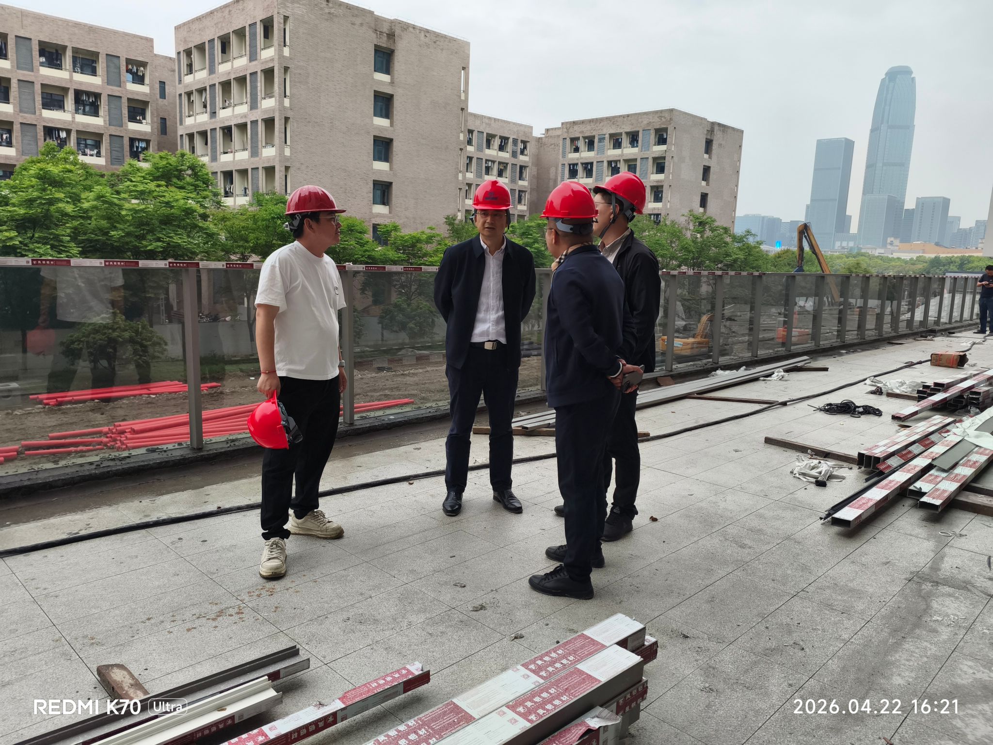 在研究生公寓施工现场,朱坚逐层逐间察看学生宿舍建设情况。他指出,优质舒适的公寓环境直接关系到学生的身心健康、学习效率与成长成才。要从严把控电梯、空调等核心设备的遴选与安装全流程,坚决杜绝质量隐患,确保设备运行安全稳定、使用便捷高效;同时要提前谋划投用后的运维管理模式,为学生提供持续可靠的服务保障。要紧密结合当前学生实际需求,进一步科学优化一层公共空间、二层户外平台等区域的功能布局,合理设置学习研讨、自助服务、休闲社交等功能分区,着力将公寓楼打造为集生活、学习、交流于一体的“一站式”学生社区。要持续发扬“钉钉子”精神,加强与市、区两级相关部门的沟通协调,加快推进高压线迁改工程落地,消除校园周边安全隐患,为学生营造安全、健康、和谐的学习生活环境。